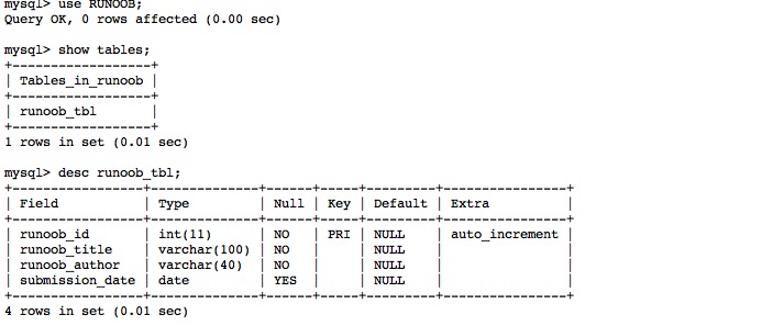 mysql> USE RUNOOB;
